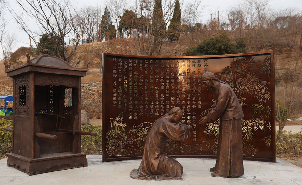 黄牌街是盱眙知名的历史文化古街,孕育了众多名士大儒,承载着几代人的记忆。本案以雕塑小品为媒介,通过场景再现的手法,还原早年黄牌街上的经典生活情景和名人传说故事,如《打铁》《酱园》《吴棠访师》《杨介制都梁丸》等。